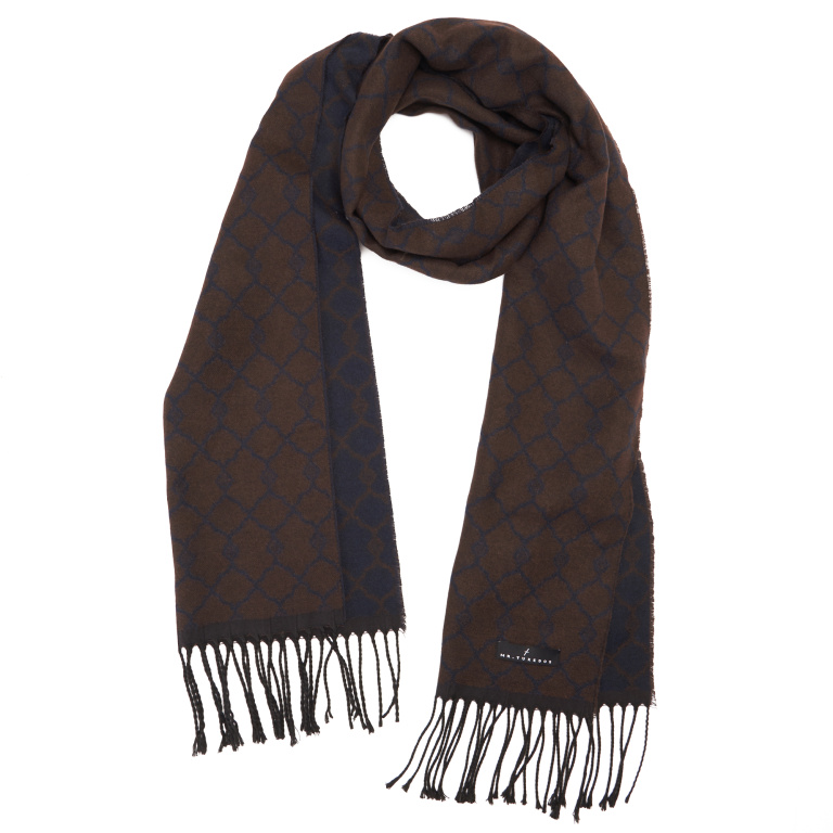 Navy Blue Scarf with Dark Brown Pattern