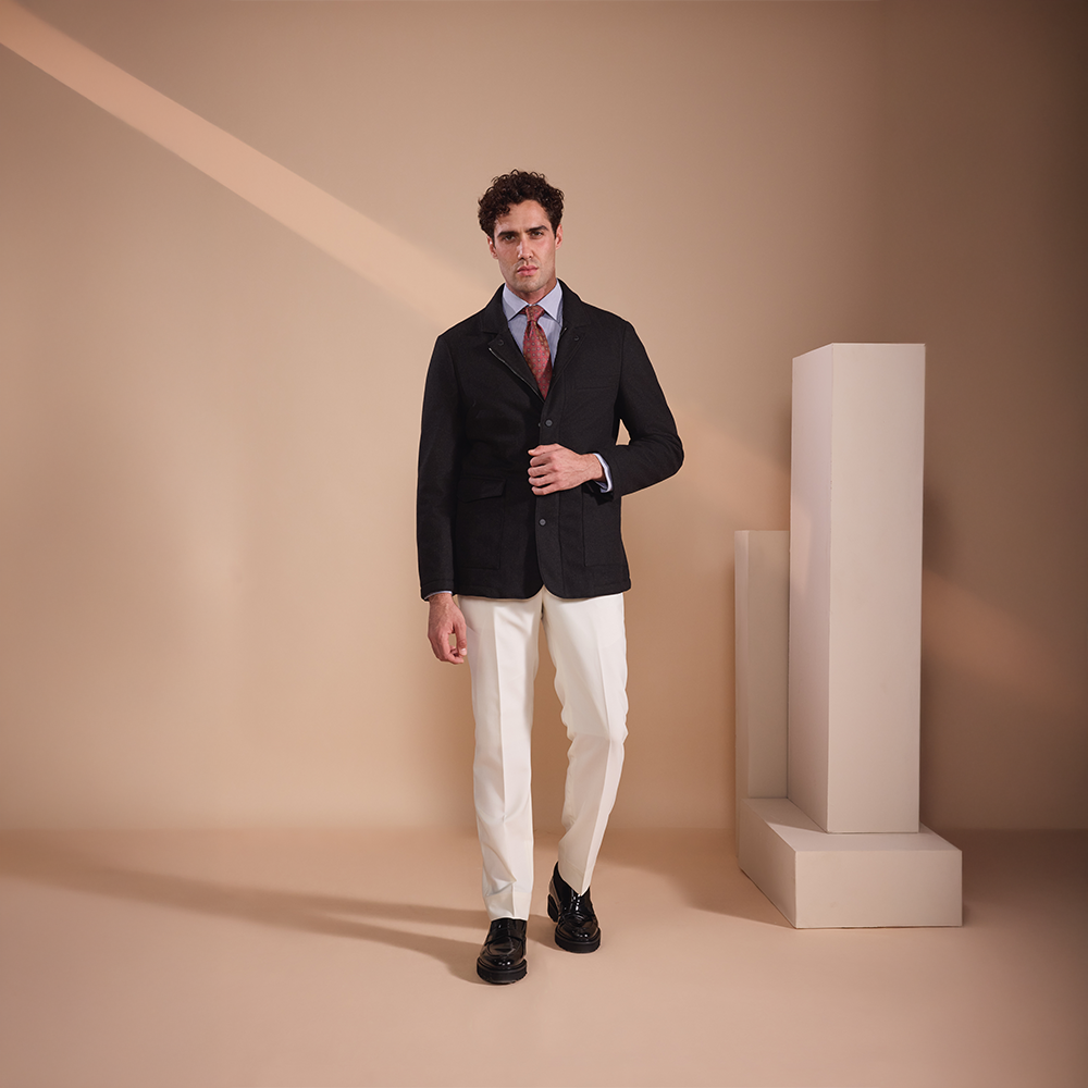 Elegant black jacket with a sleek touch. Works perfectly for casual and formal outfits