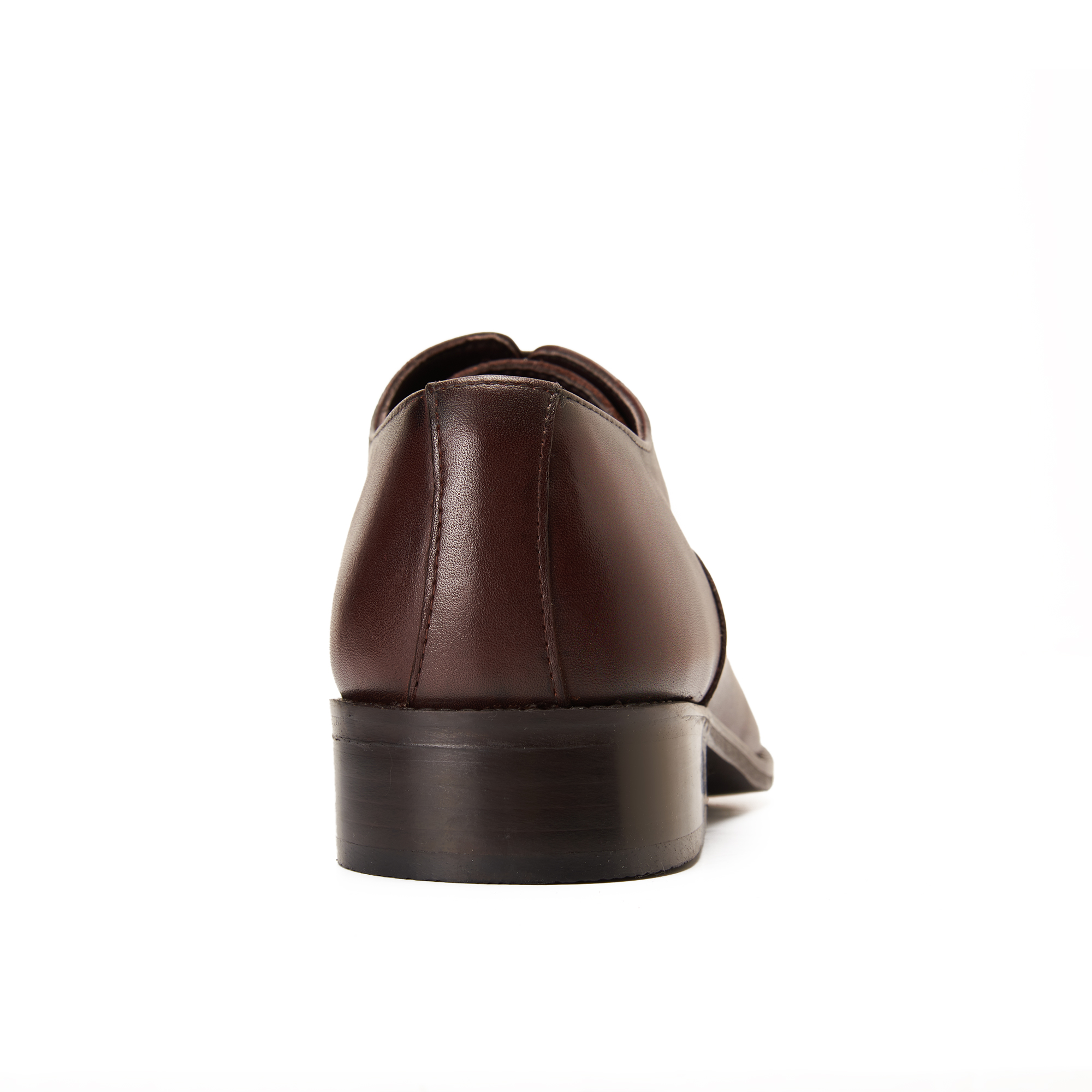 Brown cap-toe Oxford shoes made of real leather with a flat sole