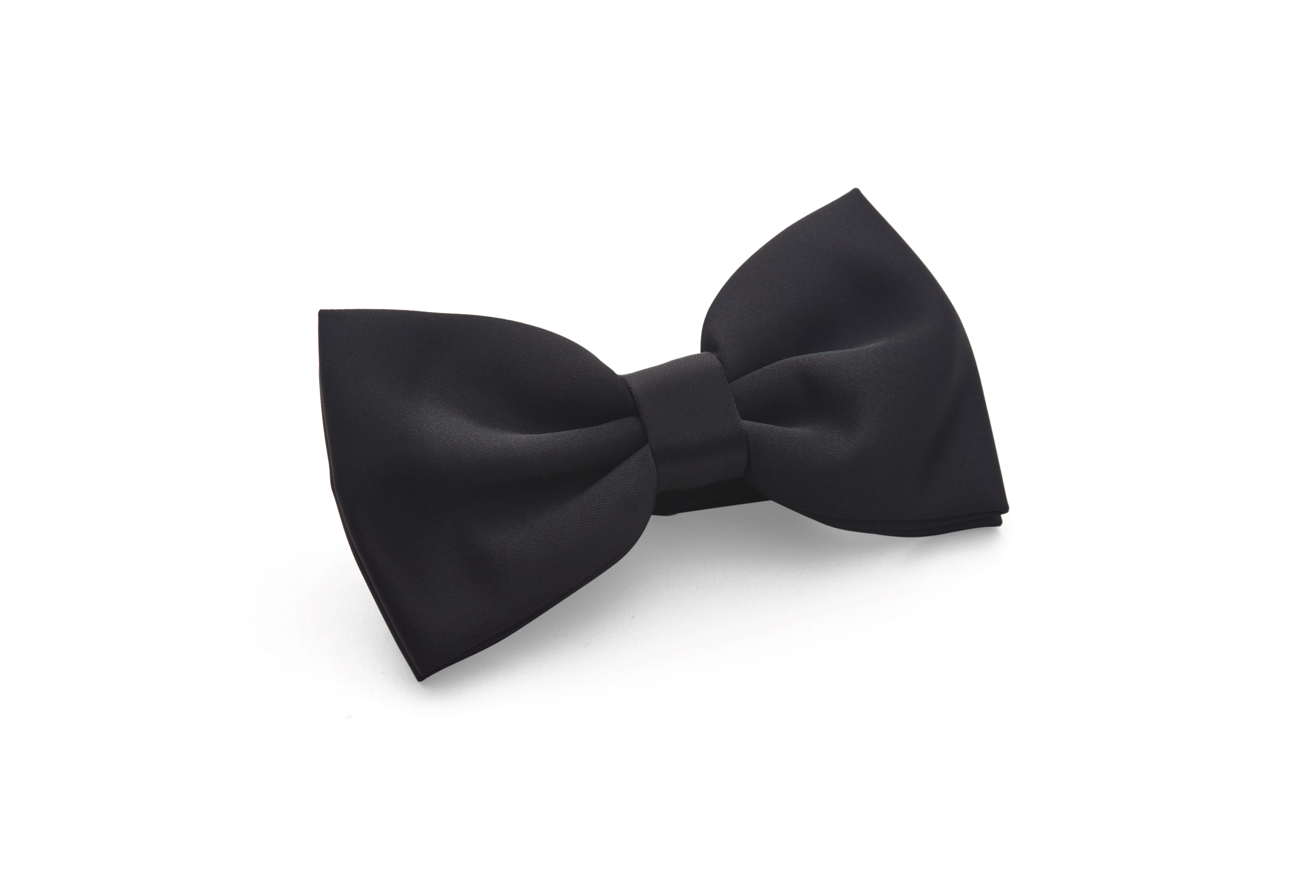 Pre-tied Bow Tie with 3 folded lines. Made with Black Luxury satin (Height 7Cm * 12.5Cm Length)
