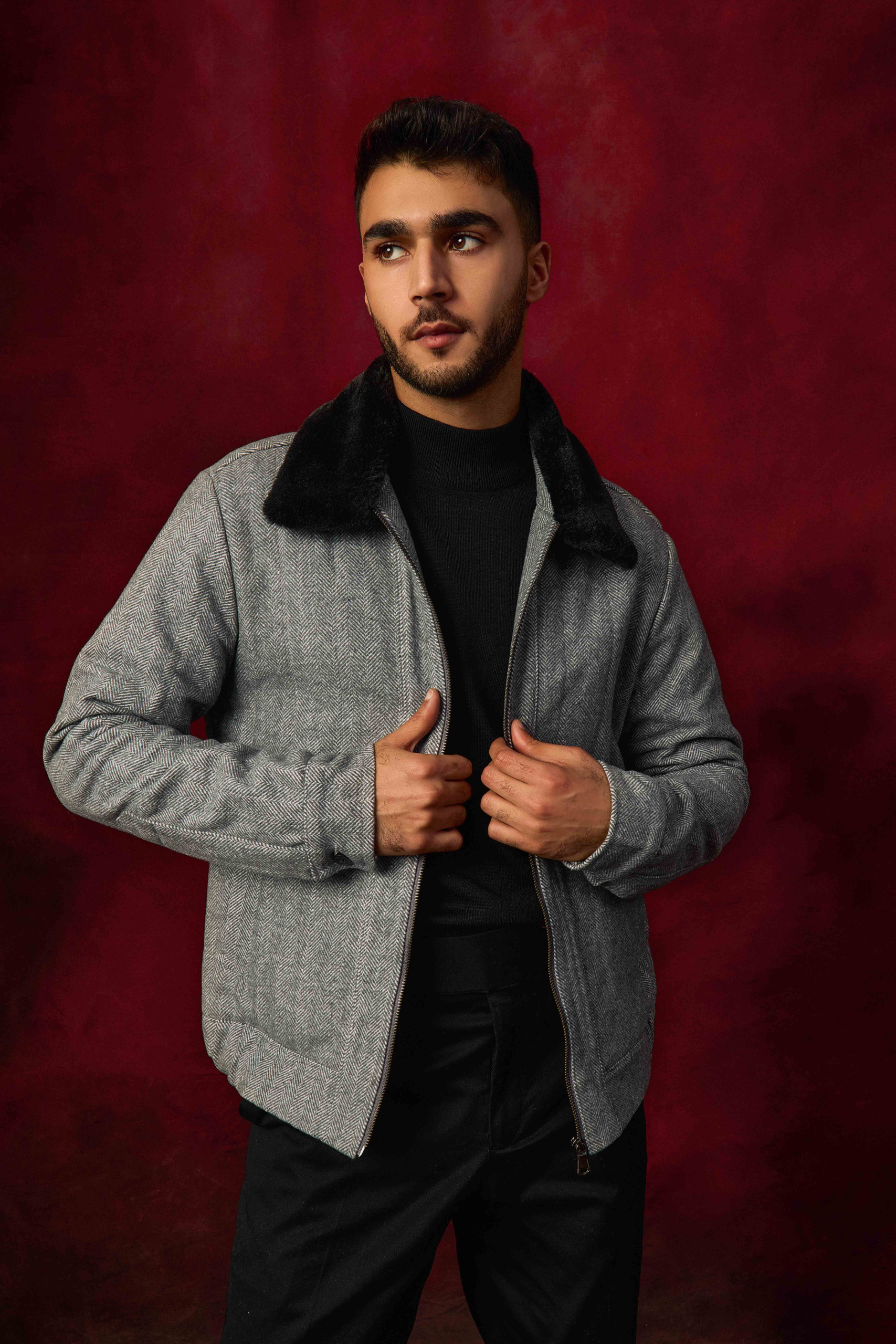 This jacket is made up of soft wool with fur removable collar – front zip closure
