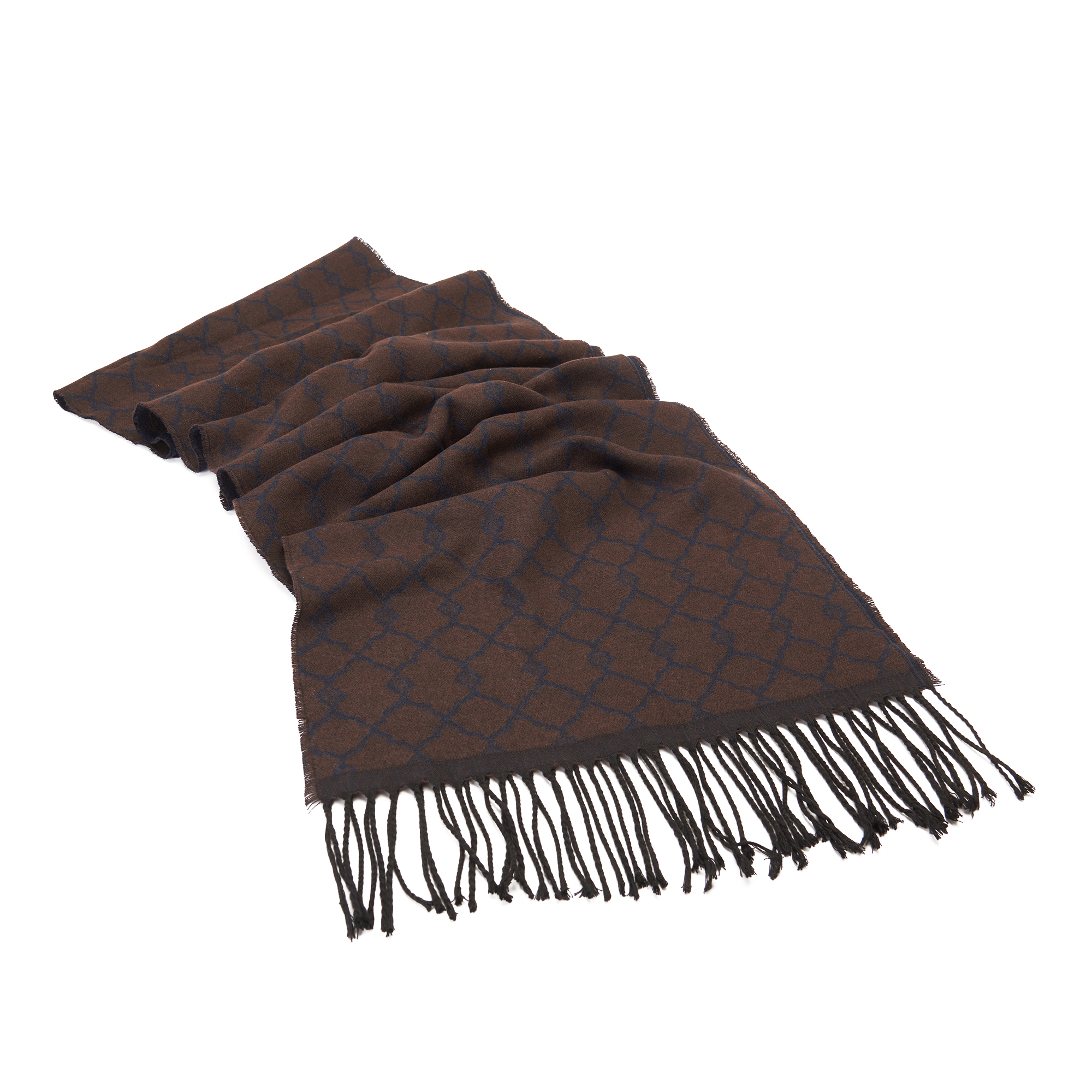 This is made from cashmere for a supremely soft handle scarf and versatile winter essentials. Knit is finished with fringed trims. And it has two faces Brown and Navy.