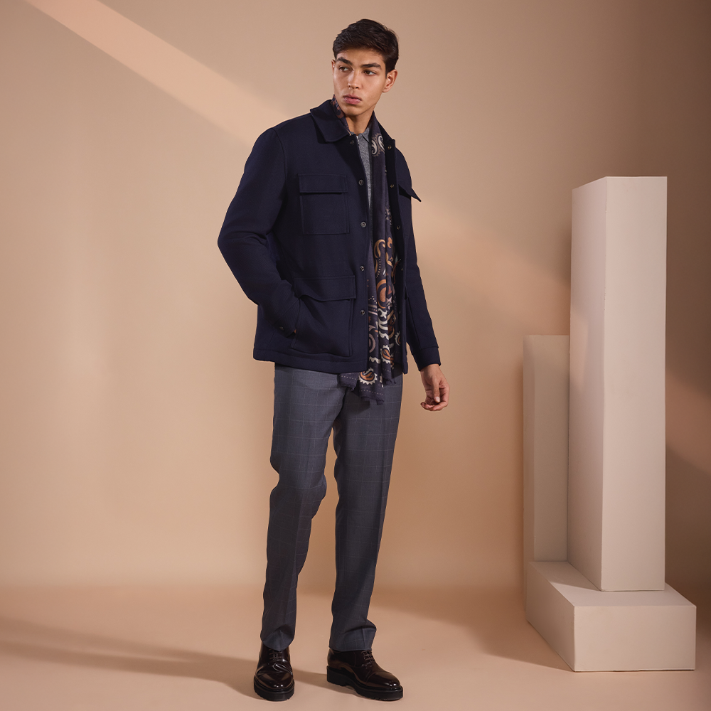 Elegant navy jacket with a sleek touch. Works perfectly for casual and formal outfits